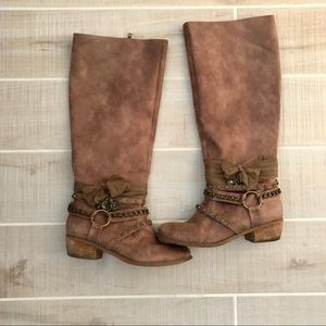 Fun detailed riding boots. Super adorable to pair with jeans. Look as good as new! Size 8.5 but run small. Fits like 8s.