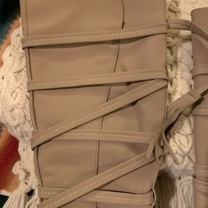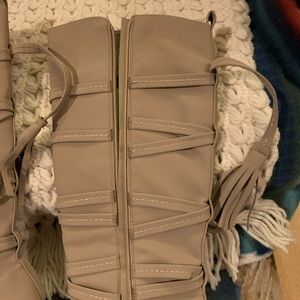 Tall shaft ribbon boots with tassel tie in the back