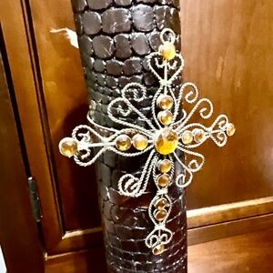 Cross, religious, Christian, Catholic, religious, hope, faith, candle, holder, sparkling, rhinestones, embellishments, Tuscany, Transition, traditional, deco, decoration, decorative, gift, sympathy, graduation