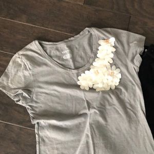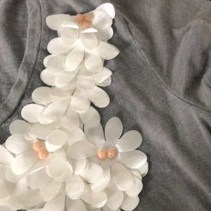 Step up your casual tee shirt game with this gray v-neck. It has this gorgeous added ivory 3D floral design.