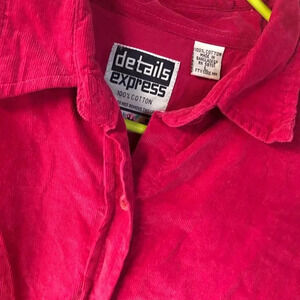 Details Express 100% Cotton Pink Corduroy Button Down Long Sleeve Large Vintage