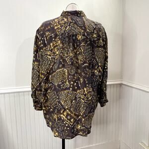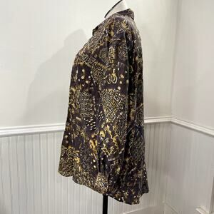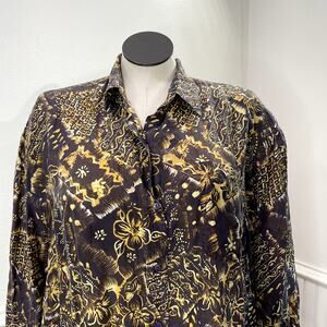 Details Express Plus Size 24 Shirt 100% Silk Button Front Floral Artsy Gray Gold