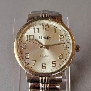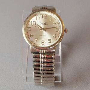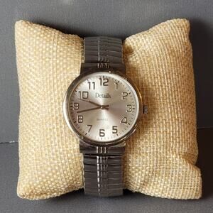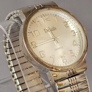 Details Mens Quartz Watch Silver Dial Expansion Band Stainless Steel Back Tested
