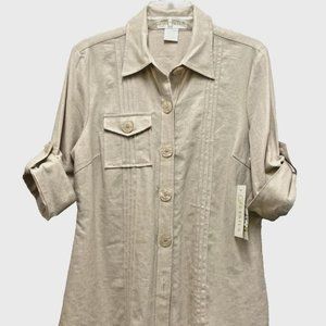 Details Womens Shirt Size M, Linen Cotton, Safari StyleButtondown, Collared, NWT