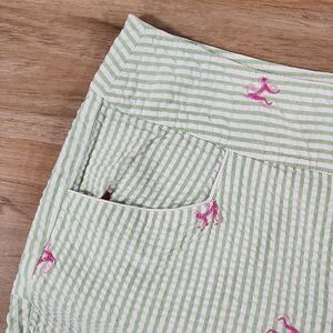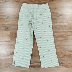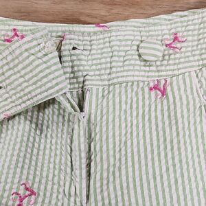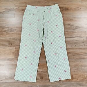 🔹️Details by Buschwacker Green Seersucker w/Pink Monkeys Capri Pants Size 8