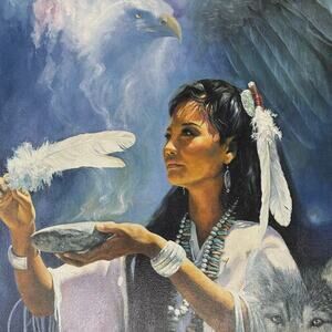 Tags: Native American art, Detha Watson, Franklin Mint, framed wall art, Southwest decor, feminine strength, spiritual art, dove, collectible art print