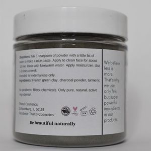 Specially formulated vegan clay mask with charcoal and turmeric. It detoxes skin, leaving it clean and fresh. A must have for people living in big cities where they are constantly exposed to toxins. Made in the USA. No parabens, fillers or other chemicals. Only pure, natural, active ingredients. One jar makes about 20 healthy, luxurious facials.