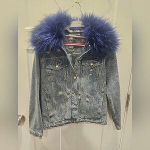 Detre Black Denim Sweatshirt Lined Jean Jacket.