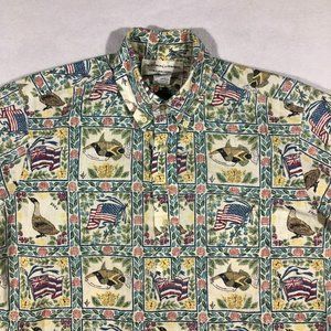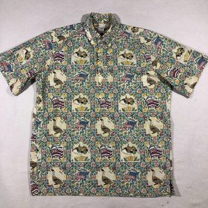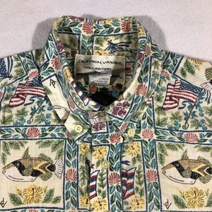 Detrich Verez Reyn Spooner Mens Small Patriotic Hawaiian Half Button Shirt Fish