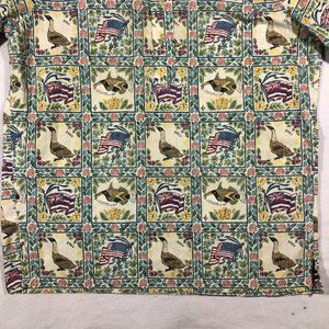 Detrich Verez Reyn Spooner Mens Small Patriotic Hawaiian Half Button Popover/Pullover Shirt State Flag American Flag State Fish Humuhumunukunukuapua'a Nene Goose 2007