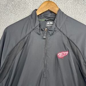 Detroit Red Wings Jacket Mens Large Black Windbreaker 1/2 Half Zip Pullover Logo