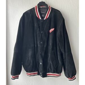 Detroit Red Wings Suede Leather Bomber Jacket XL Black Quilted Lined NHL