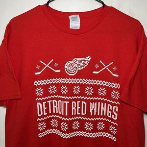Detroit Red Wings T Shirt Size Large Christmas Sweater Style Delta Pro Weight