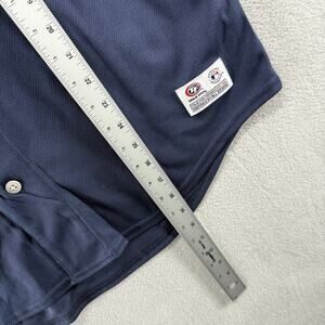 Detroit Tigers Baseball Jersey Men's Large Blue Orange Button Spellout Retro NEW