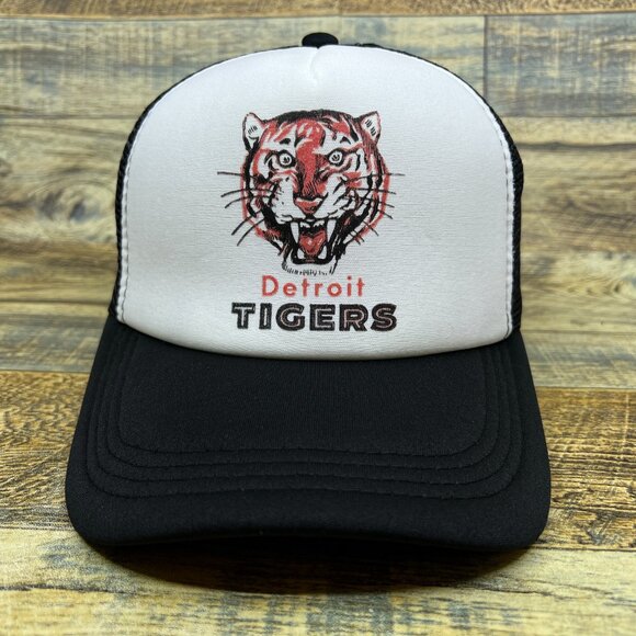 Detroit Tigers Mens Trucker Hat Black Snapback Vintage 1957 Logo Football Cap
