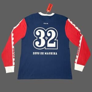 Deus Ex Machina Box Fit Round Up Long Sleeve Tee Red Blue Size XL NWT