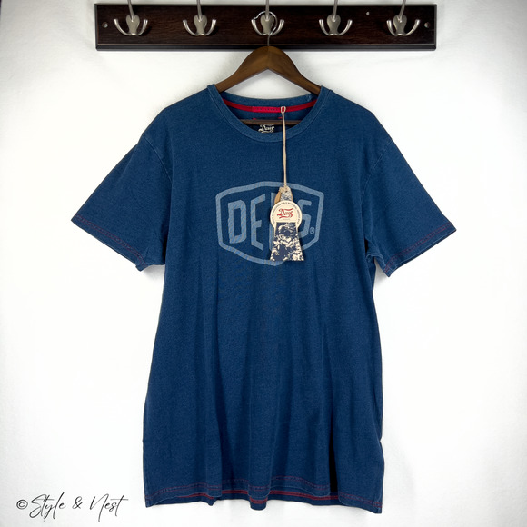 NWT DEUS EX MACHINA SHIELD TEE, RETRO MOTORCYCLE GRAPHIC PRINT, 100% COTTON PREMIUM FABRIC, CLASSIC SHIELD LOGO DESIGN, OVERSIZED 2XL FIT, SURF MOTO CULTURE ESSENTIAL, VENICE BEACH HERITAGE STYLE, EFFORTLESS STREETWEAR STAPLE, TIMELESS WARDROBE MUST-HAVE, MACHINE WASH GENTLE, SOFT HAND FEEL COMFORT, DEUS EX MACHINA SIGNATURE BRANDING, URBAN BIKER AESTHETIC, FESTIVAL CASUAL READY, COLLECTOR GRADE MOTO TEE, BOLD FRONT CHEST PRINT, RETRO DEUS SHIELD MOTIF, AUSTRALIAN BRAND ICON, LUXE EVERYDAY T-SHIRT, ECO-FRIENDLY COTTON CONSTRUCTION.