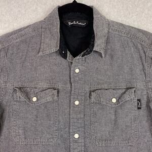 Deus Ex Machina Shirt Mens S Grey Long Sleeve Chambray Pearl Snap Moto Work