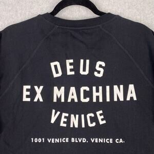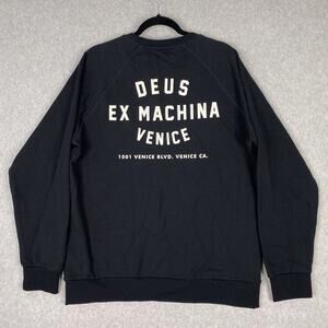 Deus Ex Machina Sweatshirt Mens XL Black Venice Address Crew Neck Spell Out