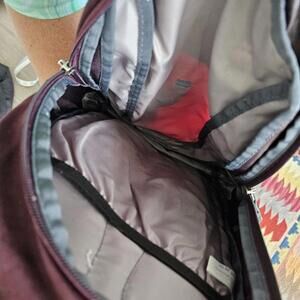 Backpack has stains and runs on front and minor signs of wear. Backpack is 16×11.5. See photos. Still a solid pack, just has some visible marks.