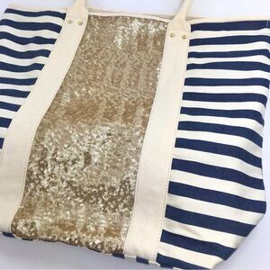 Deux Lux X Everything But Water Navy Blue Gold Sequin Nautical Canvas Tote Bag