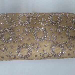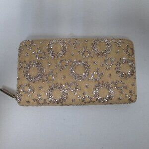 Deux Lux gold Glitter Raffia zip around Wallet Organizer change & card pockets