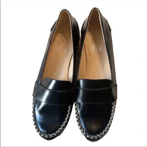 Deux Souliers Black Stitch Platform Loafers Size 41 Approx 1.5” platform
