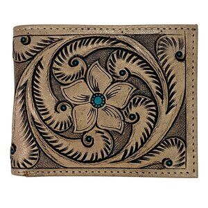 Dev Export Hand-tooled Leather Bifold Wallet Mens Unisex Western Flower Cowboy