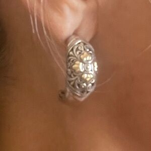I have to different style J hoops to be sold together- a 2 for 1 if you will. 925 sterling silver and 18k gold accents on the one.