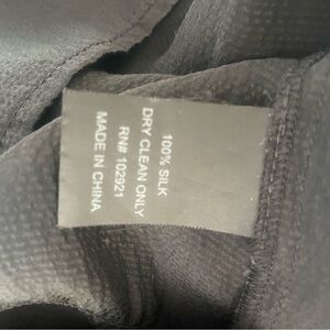 Vintage Development Black Silk Ruffled blouse with hook and eye closure and tie neck. Incredible sexy and can be worn with both jeans and heels or skirts. Very flirty. Purchased at Girl Boy Girl in Carmel. In very good pre owned condition.
