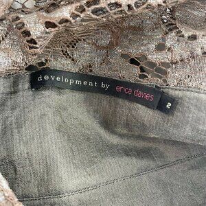 Development by Erica Davies Lace Silk Mini Cocktail Dress Gray 2 Flutter Sleeve