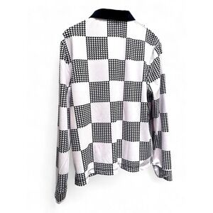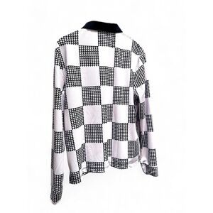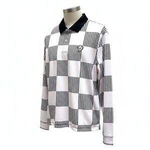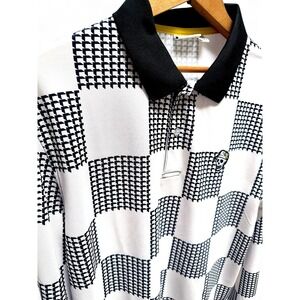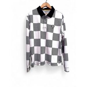 Add bold style to your game with this Devereux Golf Long Sleeve Polo Shirt in size Small. Featuring a striking black-and-white checkered houndstooth pattern and a signature skull-and-hat logo patch, this shirt combines modern design with athletic comfort.