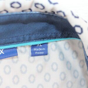 Devereux Performance Mens XL Golf Polo Shirt Blue White Geometric Print