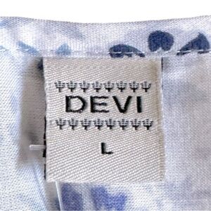 Devi Blue White Floral Print Rayon Tunic Dress Size L Boho Resort Beach NWT