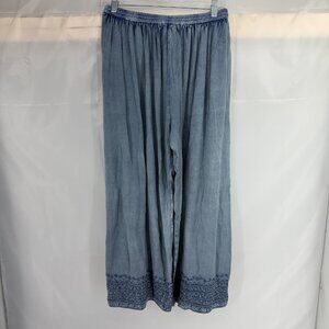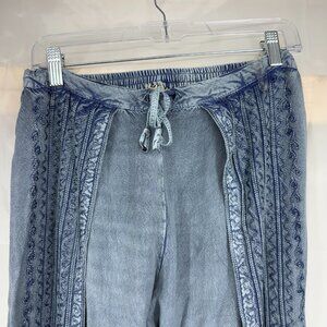 Devi Women One Size Harem Pants Wide Leg Boho Bohemian Blue Cropped Stretch