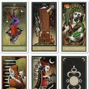 Stylized characters and moonlit dreamscapes draw you into the luminescent world of Deviant Moon Tarot. With larger cards, this special Borderless Edition highlights Patrick Valenza's stunning artwork and allows readers to connect more deeply with the evocative tarot imagery.
