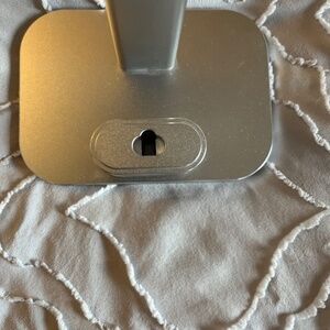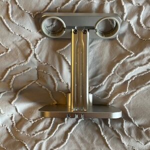 From Amazon. Dual Apple Watch charging stand with charging stand for Apple AirPods (regular & Pro). Cords have built-in pathways for cord management. Features anti-skid bottom & rings for watches to ensure charging. Like new - excellent condition. Color is silver. 5-6in tall. Paid $23.