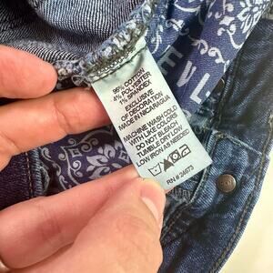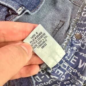 Overall good used condition with spot of overstretch on back right of waistband. Tag says slim, but looks like more of a skinny fit.