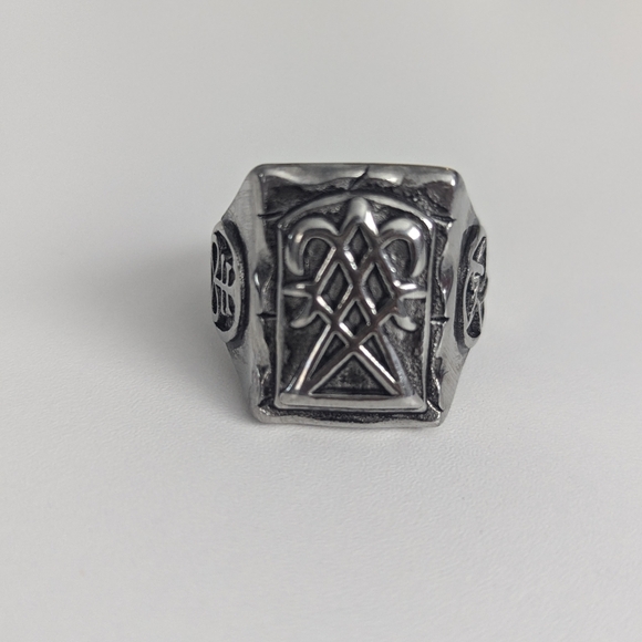 Reposhing this item I purchased from @maryyako1423. I didn’t know these symbols on the ring are Devil related. Not my style .