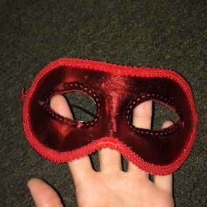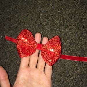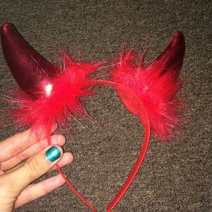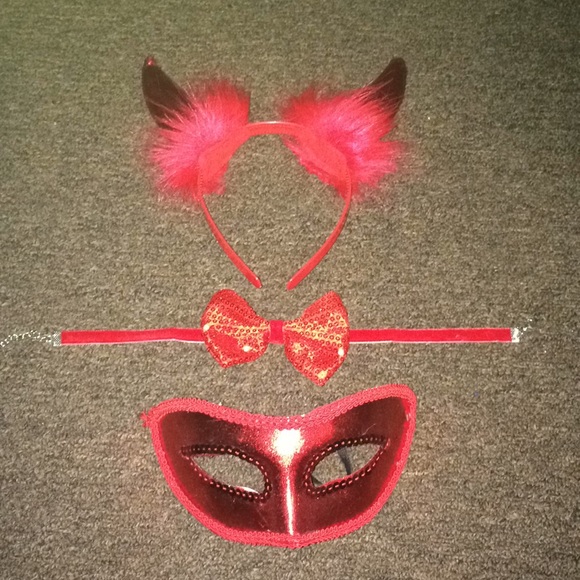 Never worn before Devil horns with red mask and matching shiny red bow tie necklace (choker)