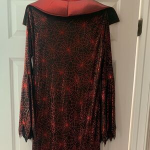 Great condition devil witch spiderweb metallic red and black cape with jagged edges.