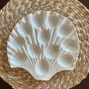Original Fitz and Floyd shell-shape deviled egg dish. Perfect condition no scratches or chips.