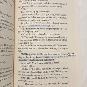 Yes, there are annotations in the book. Not all the annotations are pictured. Posted a few to see what annotations look like. Less than 20 underlines/highlights