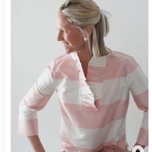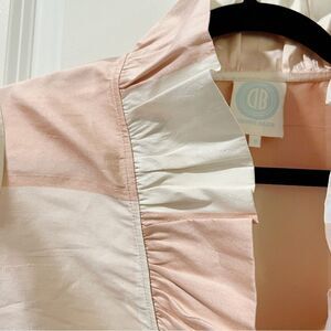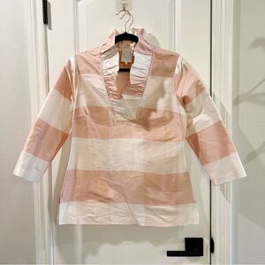 Devon Baer Ruffle Neck Tunic Top Pink and White Silk S