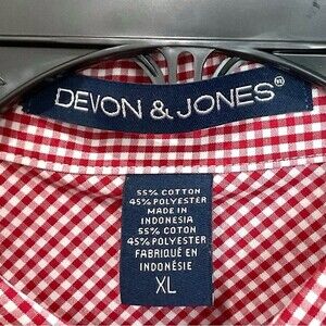 Devon & Jones Leinenkugel Shirt Red Check Gingham Long Sleeve Work Shirt Sz XL