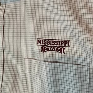 Devon & Jones Mens Size M Mississippi State Button Down Cotton Blend Checked
