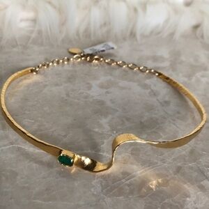 14k/20 gold plated choker real emerald color gold en green size 5-1/2x5-1/2 inches