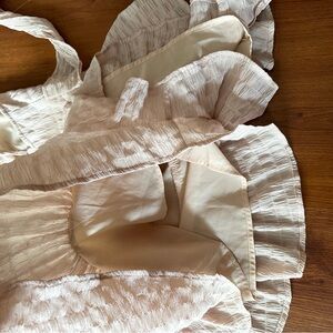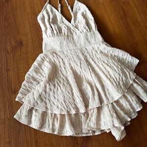 Excellent condition, worn once! This romper looks like a mini dress but has shorts built in. Zipper closure and tie waist for a snatched figure. The perfect summer outfit!