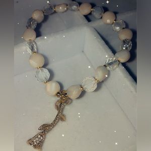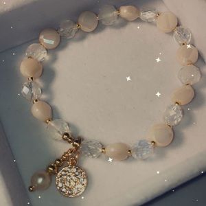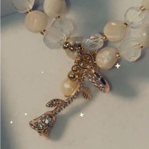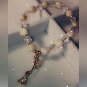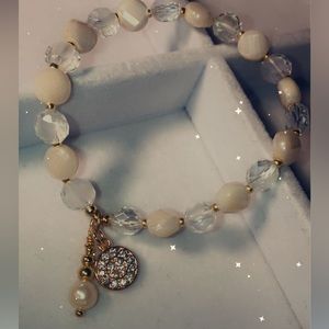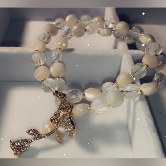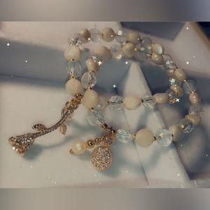 Two beaded bracelet set with gold accents and charms.