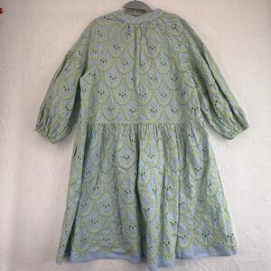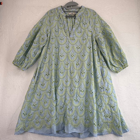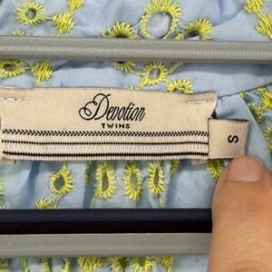 Devotion Twins Amorgos Women's Blue & Yellow Eyelet Embroidered Dress - Small